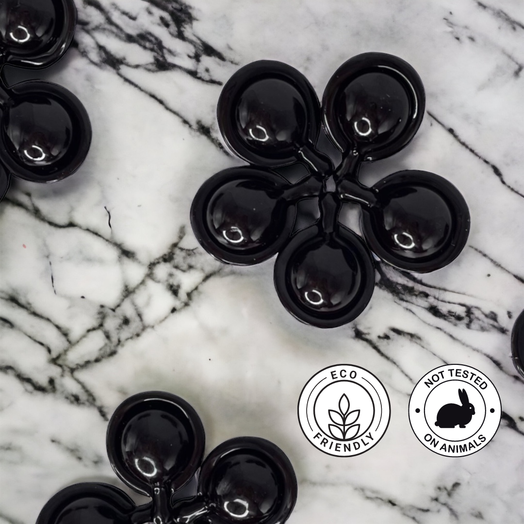 Whether you have dry, damaged hair or are just looking to tame the frizz, our Hair Oil Vitamin Capsules are a perfect addition to your daily routine. They can be used daily on damp or dry hair and they are suitable for all hair types! On the go? Our hair oil capsules are perfect for travel since each individual capsule is sealed.